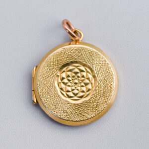 The reverse reveals a clear panel containing a lock of hair, a characteristic feature of Victorian mourning jewellery, designed to commemorate and preserve the memory of a loved one.