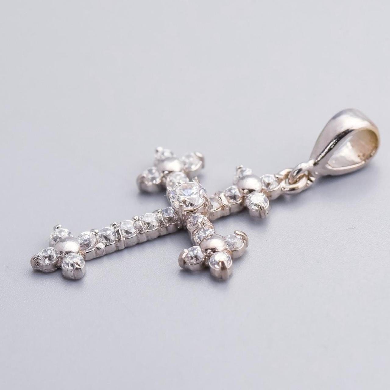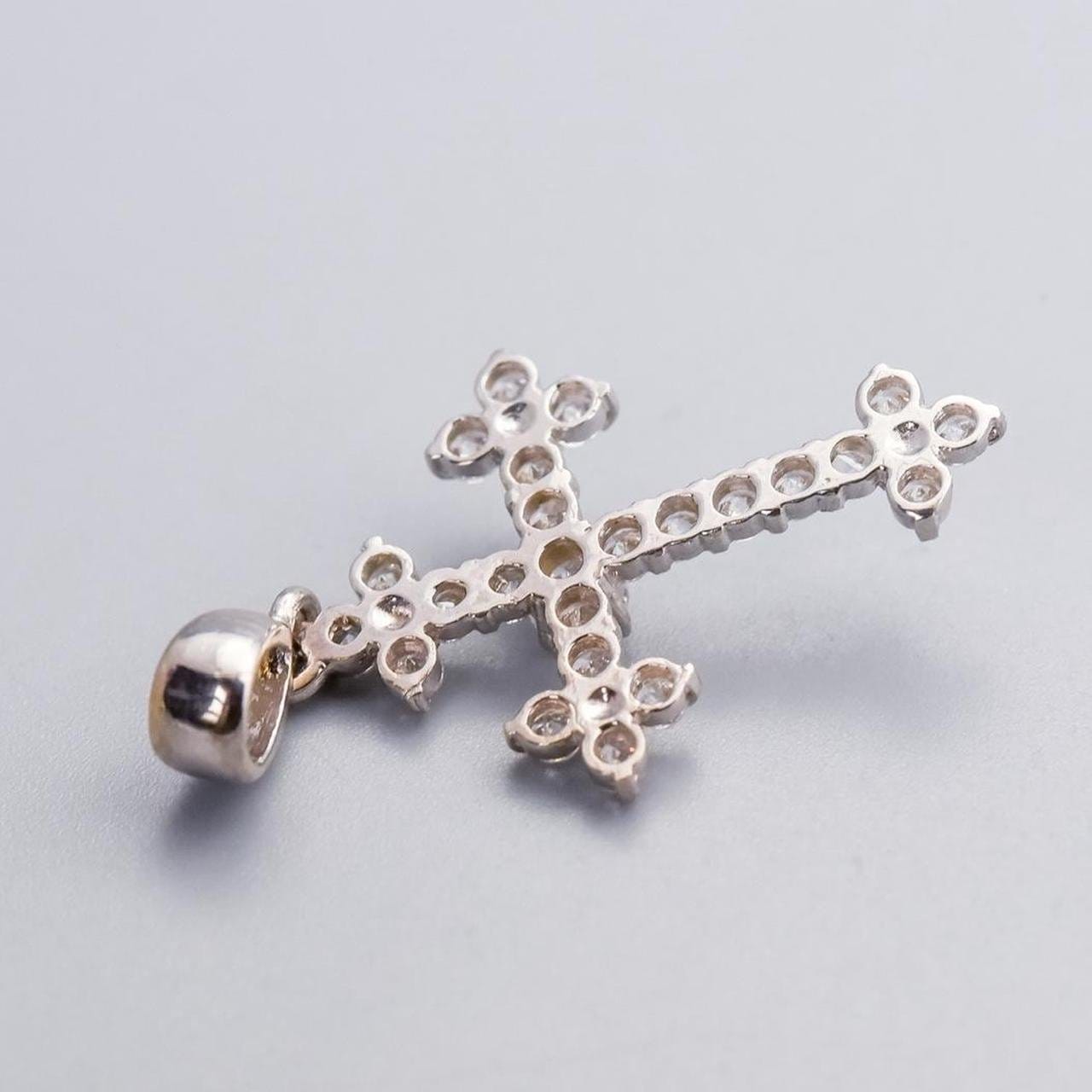 The largest CZ is set at the centre of the cross, surrounded by smaller stones that enhance its brilliance and create a sparkling effect.