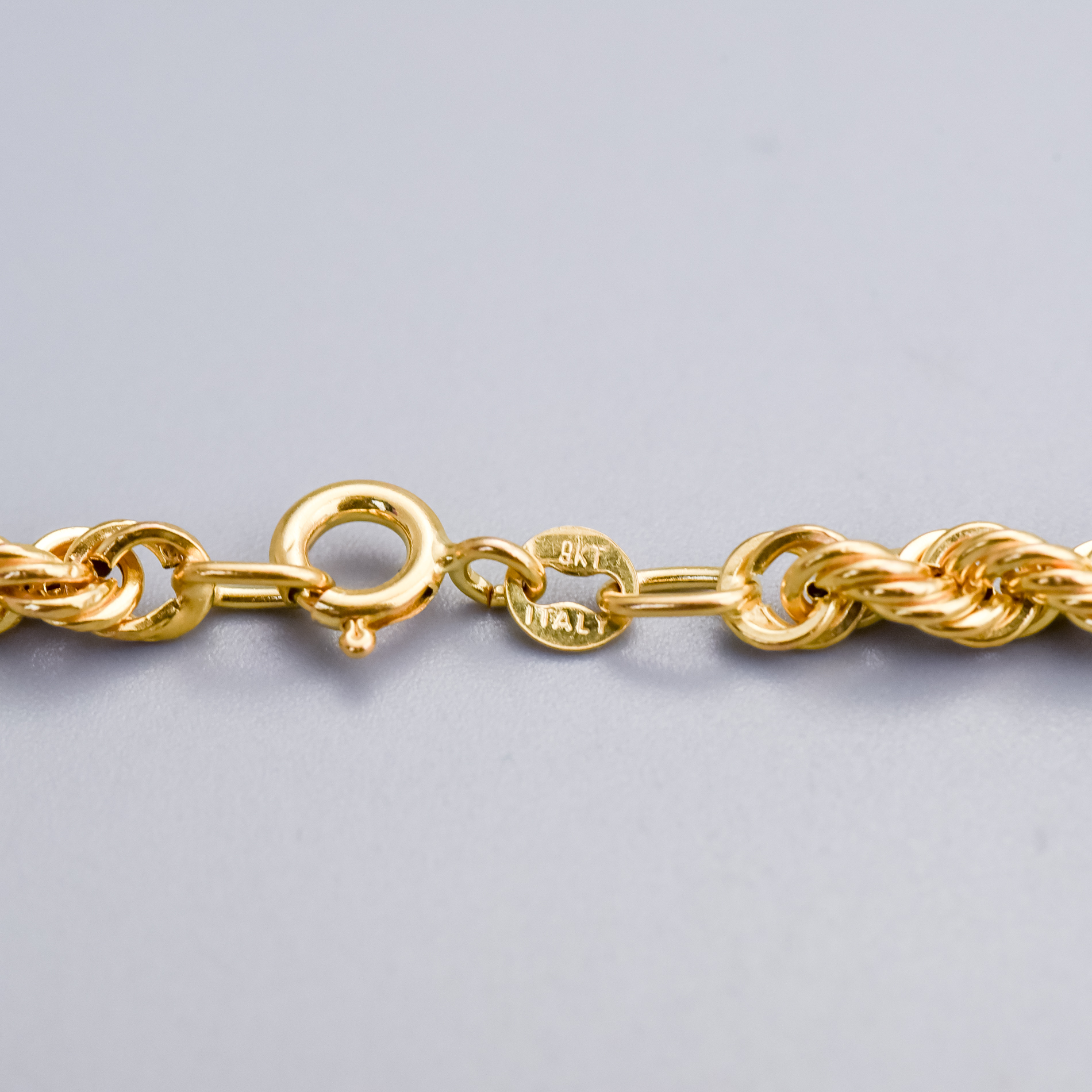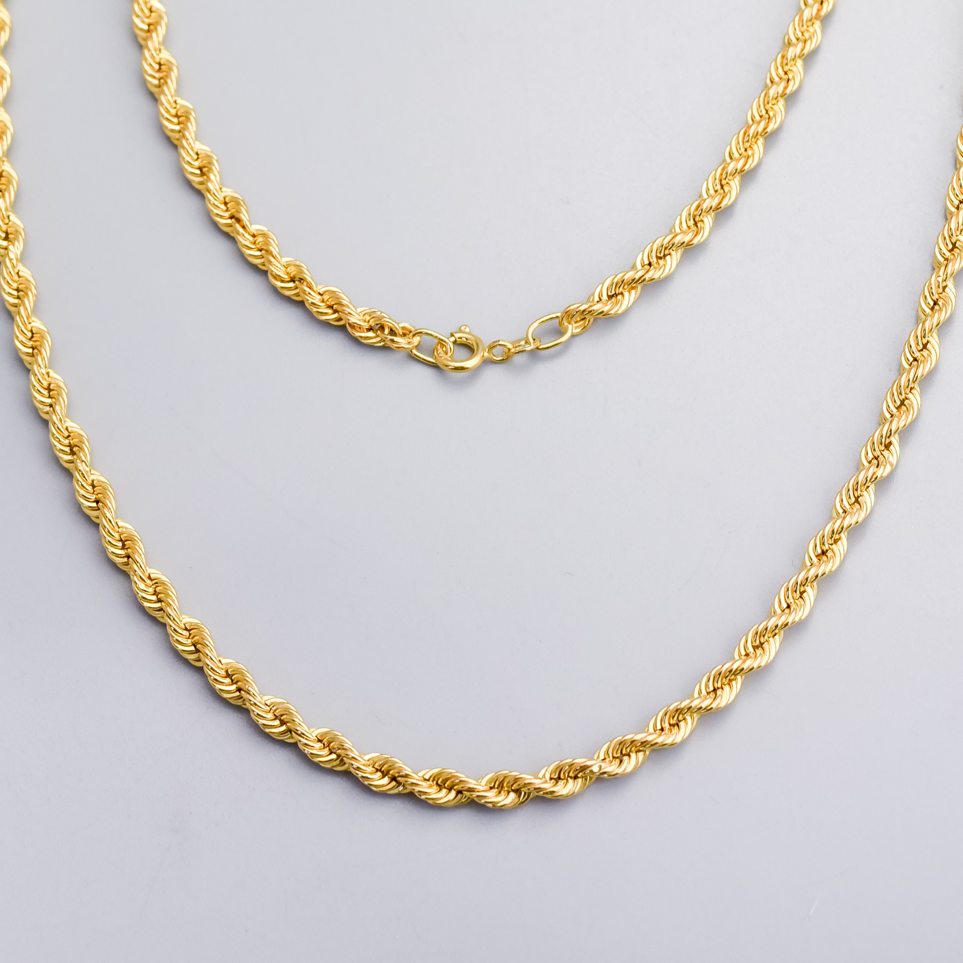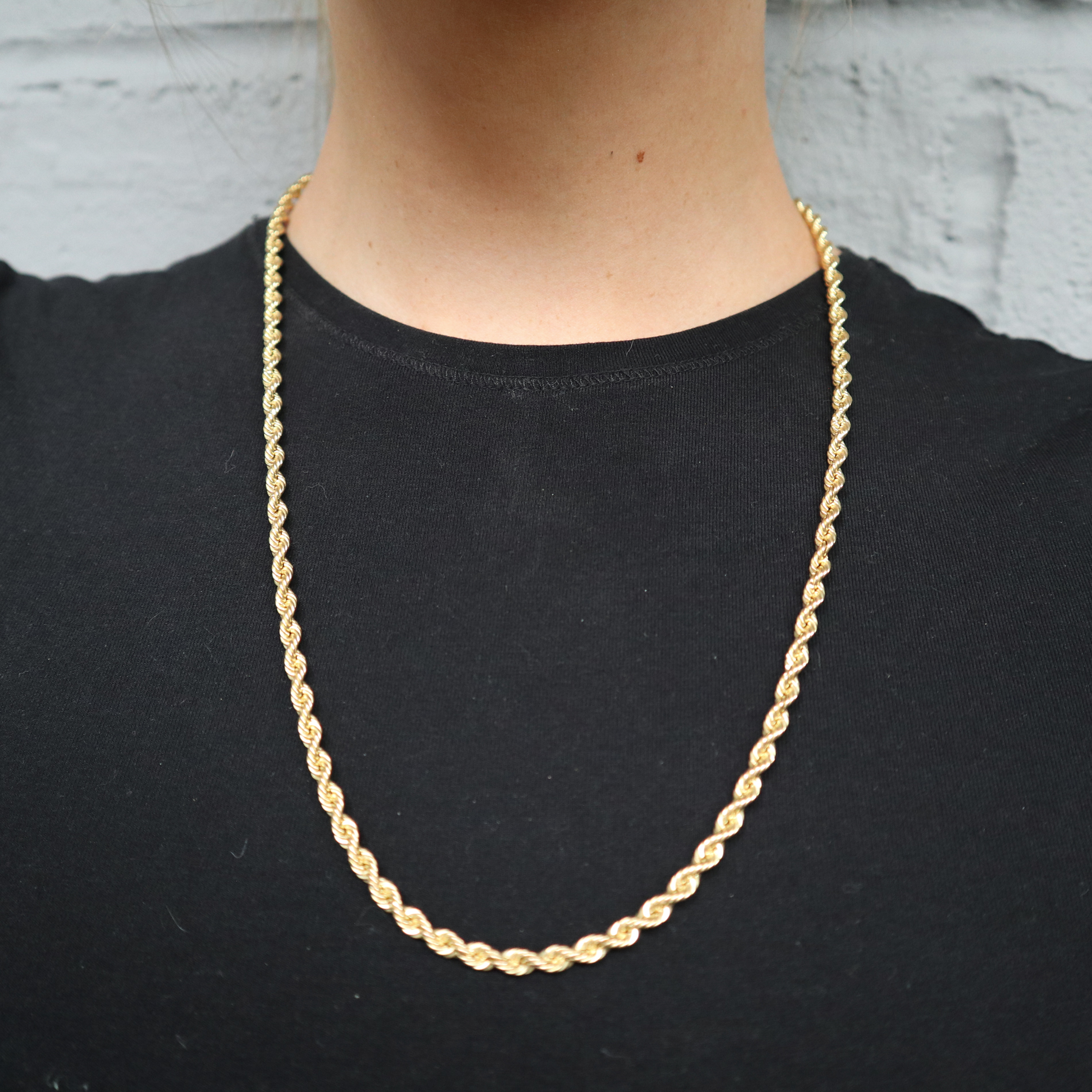 This 9ct gold rope chain necklace features the timeless twisted link design characteristic of classic rope chains.