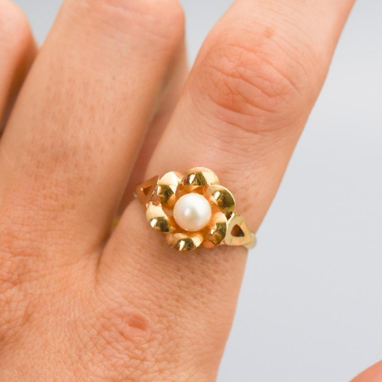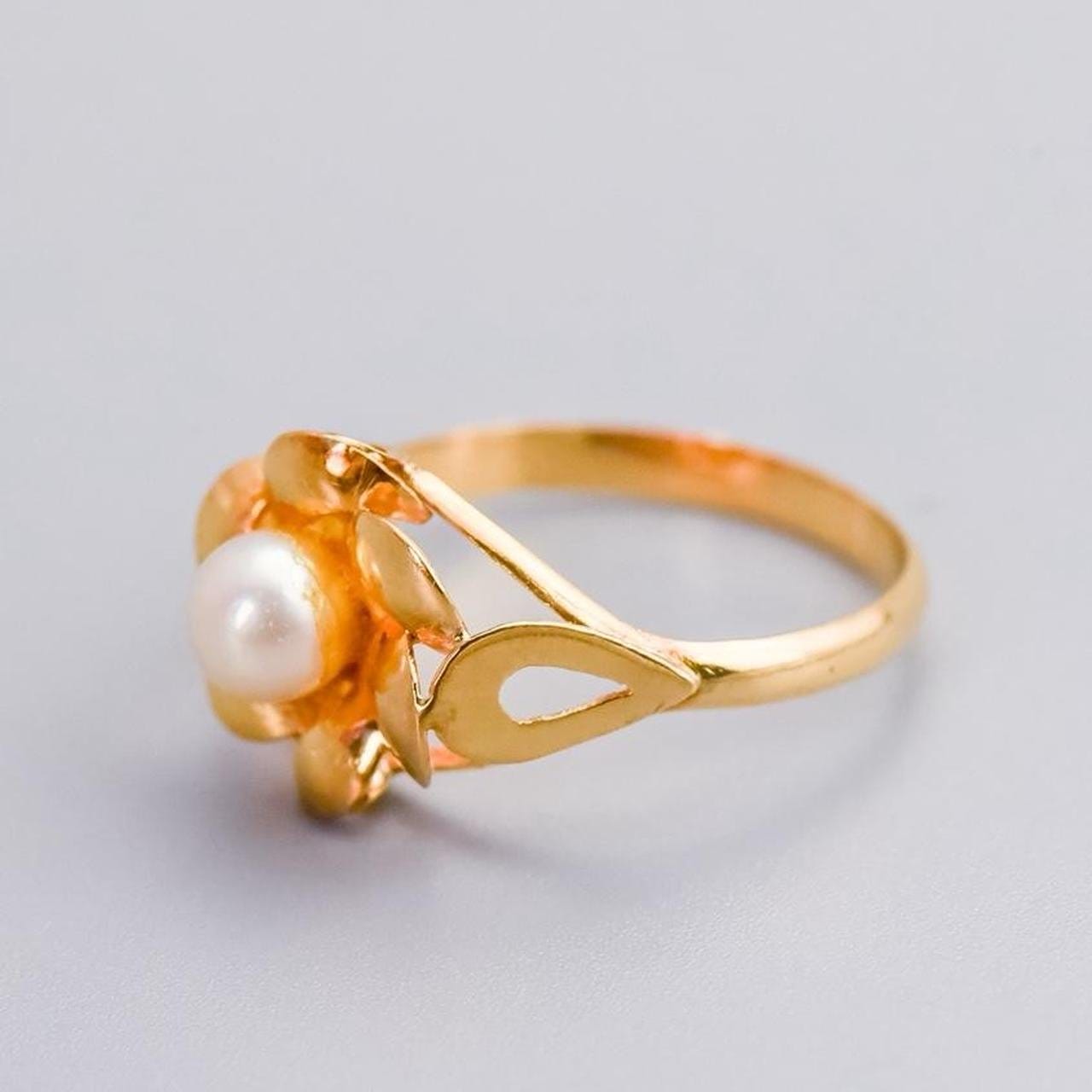 Surrounding the pearl is a layered halo of polished gold petals, crafted to evoke the gentle form of a blooming flower.